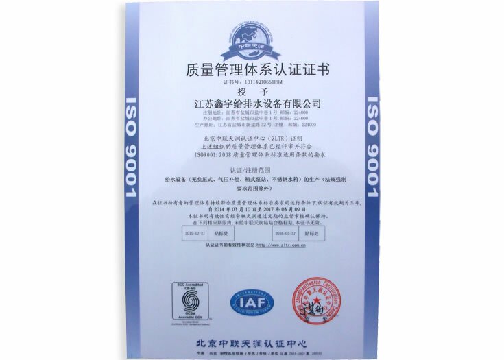 江蘇鑫宇給排水設(shè)備有限公司(原鹽城中學(xué)給排水設(shè)備廠(chǎng))自1991年成立以來(lái),一直從事專(zhuān)業(yè)的無(wú)負(fù)壓生活給水設(shè)備、消防增壓穩(wěn)壓設(shè)備等水工業(yè)設(shè)備的生產(chǎn)和銷(xiāo)售。公司持有國(guó)家固定滅火系統(tǒng)和耐火構(gòu)件質(zhì)量監(jiān)督檢驗(yàn)中心和省公安廳消防局頒發(fā)的檢驗(yàn)報(bào)告以及質(zhì)量認(rèn)可證書(shū)。無(wú)負(fù)壓供水設(shè)備取得省衛(wèi)生廳頒發(fā)的衛(wèi)生許可批件以及江……【更多詳情】